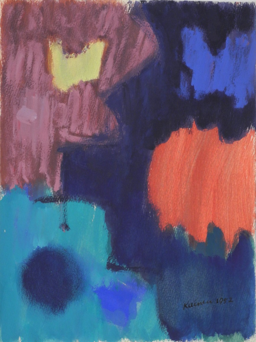 His work took root in the social realism of the 1930s, later becoming involved in the development of abstract expressionism. In 1946, he was included on Ad Reinhardt’s “Tree of Modern American Art,” a succinct map of the artists and movements defining art of the modern era. Kainen’s visceral abstractions of the 1950s encapsulated the intensity of the era, and though a break from abstraction led to a body of figurative work in the 1960s, he entered into a period of dramatic refinement of abstraction in the 1970s and 80s. Kainen’s vast fields of color and exploration of light and space allow for visual and intellectual reflection. Kainen’s work is represented in the collections of the Smithsonian American Art Museum, Washington DC, the National Gallery of Art, Washington DC, the Museum of Modern Art, New York, NY, the Yale University Museum, New Haven, CT, and the Whitney Museum of American Art, New York, NY, among other public and private collections.
