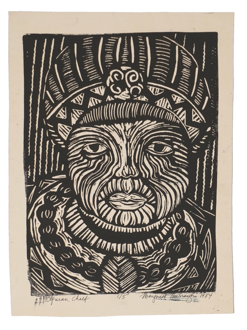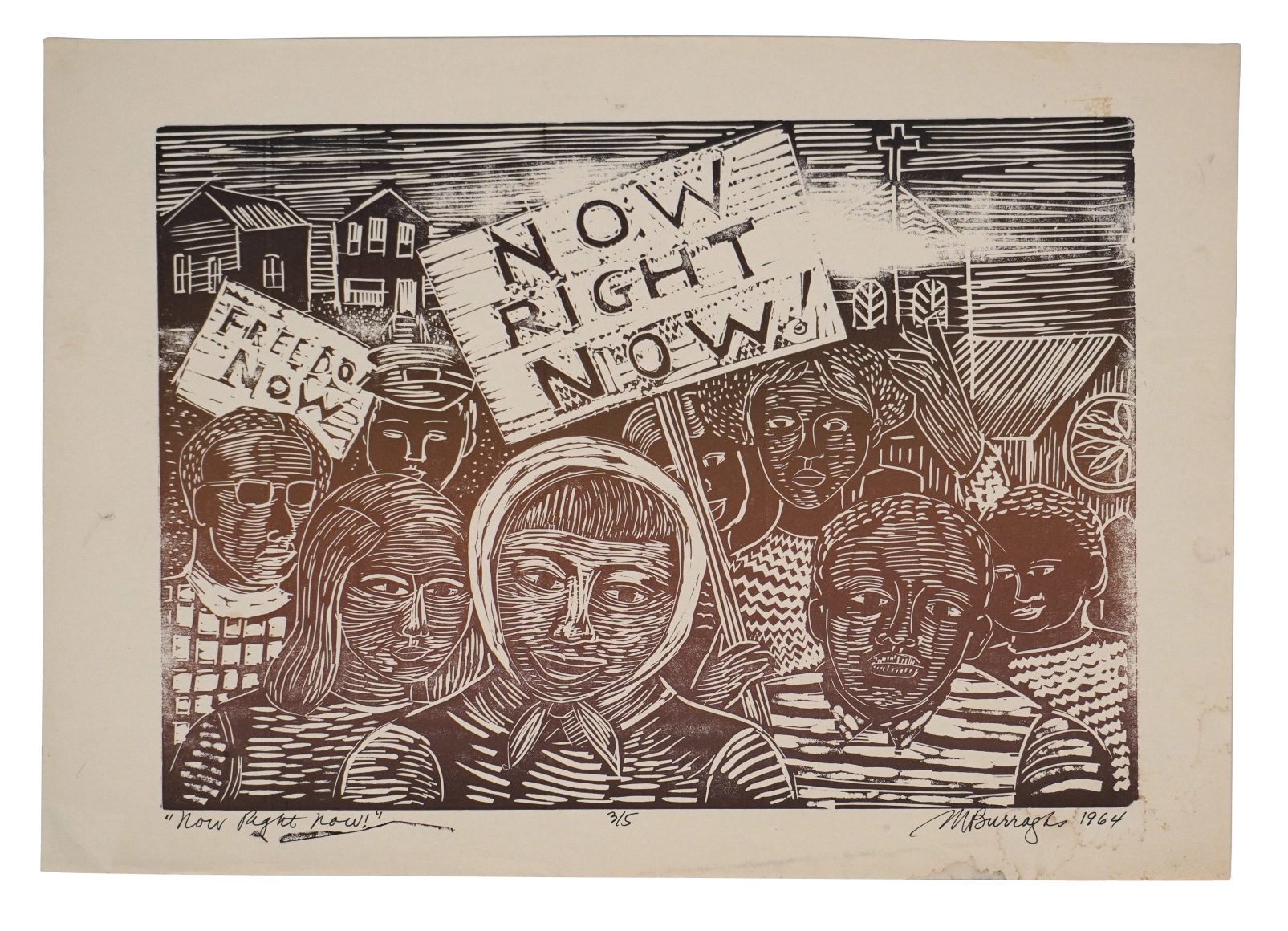 Margaret Taylor Goss Burroughs (American, 1917-2010) was born in St. Rose, Louisiana in 1917; by the time she was five years old her family had moved to Chicago. In the early 1930s, while still in high school, Dr. Burroughs joined the Youth Chapter of the NAACP with her friend, the future poet, Gwendolyn Brooks, and marched to protest the lynching of Black people in the South. She earned teacher's certificates from Chicago Teachers College in 1936 and 1939, and in 1948 earned her Masters in Fine Arts from the Art Institute of Chicago after having earned her Bachelors there in 1946. Throughout her career, Dr. Burroughs was fervently engaged in the enrichment and expression of African-American artistic, political, and community life through education, promotion of the arts, and the creation of a historical consciousness.