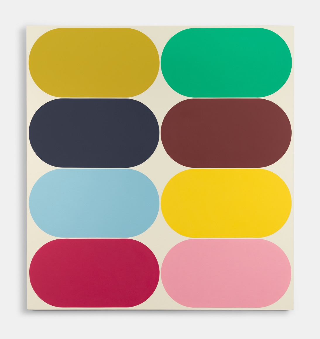 Yi's paintings portray static, abstracted images of urban landscapes through the use of hard-edged lines, minimalist compositions, symbolic figures, and balanced colors. Through color and composition, her visual language defers abstract qualities around the serene. Balance, weight, and time are associated with a universal visual language that reflects an autonomous state.