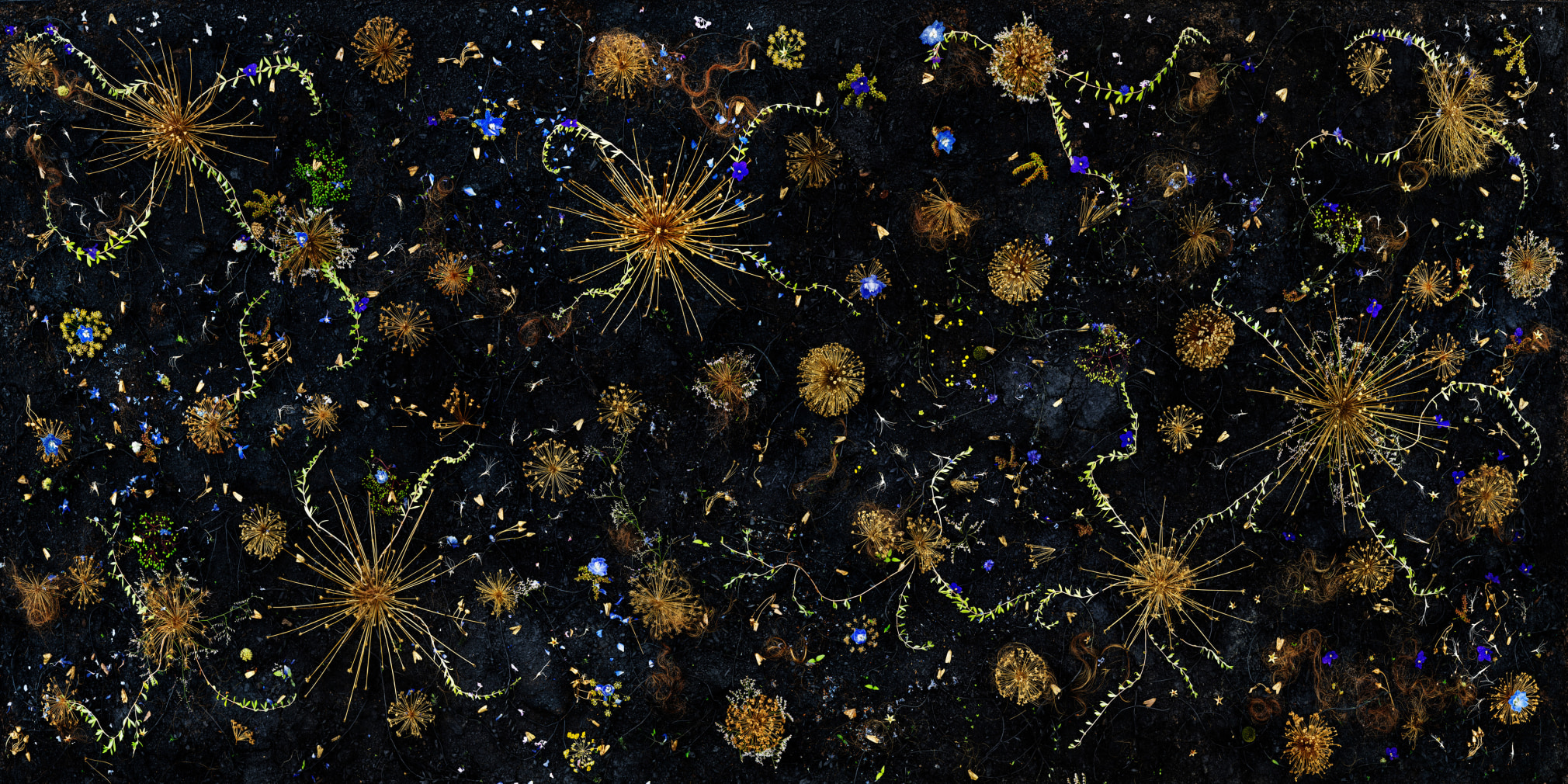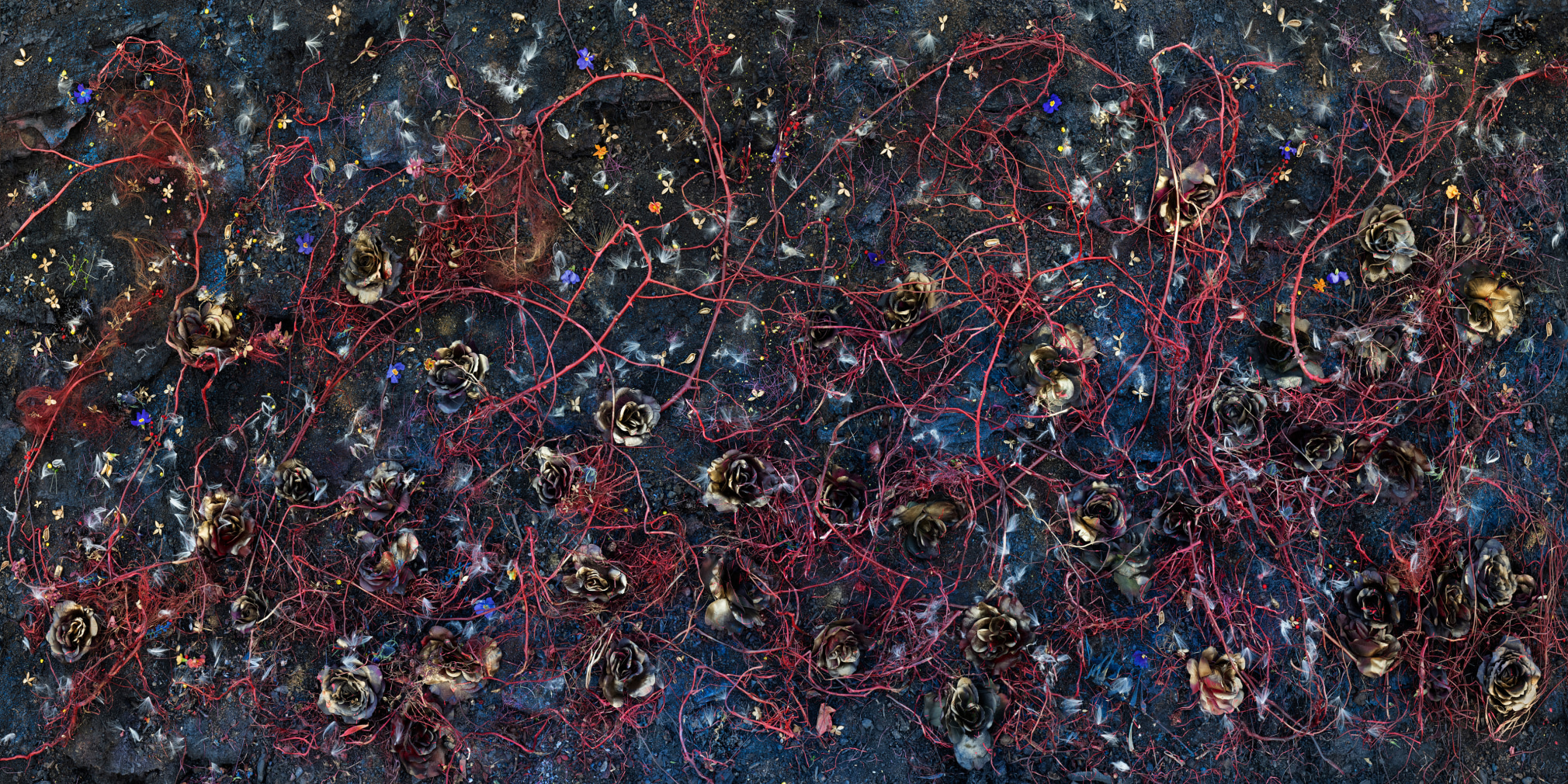 Tanya Marcuse makes large-scale photographs investigating the imperiled natural world in elaborately constructed tableaux. Marcuse began making photographs as an early college student at Bard College at Simon’s Rock. She went on to study Art History and Studio Art at Oberlin and earned her MFA from Yale. In 2005, she embarked on a three part, 15 year project – Fruitless | Fallen | Woven –moving from iconic, serial photographs of trees in Fruitless to immersive, allegorical works in Fallen and Woven. Fueled by the Biblical narrative of the fall from Eden, these related projects use increasingly fantastical imagery and more elaborate methods of construction to explore cycles of growth and decay and the dynamic tension between the passage of time and the photographic medium. In her most recent project Book of Miracles she moves into an ever more fantastical direction.