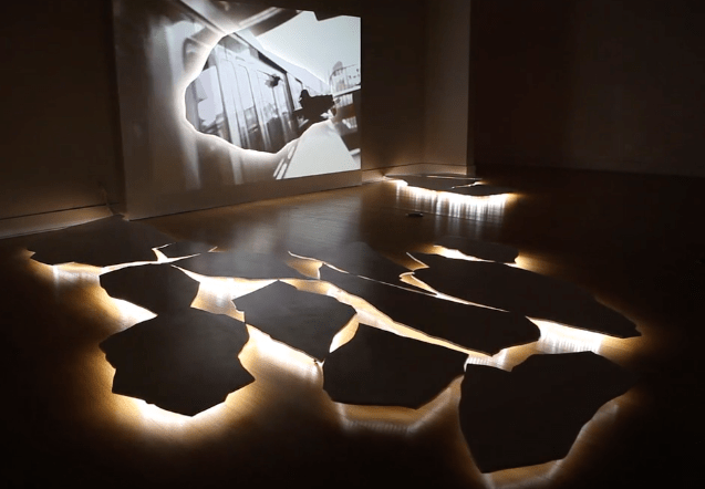 Rachel Schmidt’s “Tension” provides the viewer with an exercise in perception, compelled to use our senses of sight and sound to navigate an experience meant to portray the artist’s own during a residency at the Taipei Artist Village in Taipei, Taiwan. The viewer encounters a video depicting various environments from Schmidt’s time in Taipei scored with a juxtaposition of natural and industrial sounds, as a field of ice-like illuminated floor structures call attention to the physicality of the space. Tommy Bobo shifts his focus from video to light-play, composing nuanced wall-scapes of projected light and materials that disrupt and refract it. The light becomes sculptural, compelling the viewer to reexamine existing notions of the medium. James Huckenpahler merges classic photographic portraiture from the Brady-Handy collection of American Civil War era society portraits with a cache of images stored on his own computer. The result is an eerie pop-futurist fusion of human portraits and tech-distortion.
