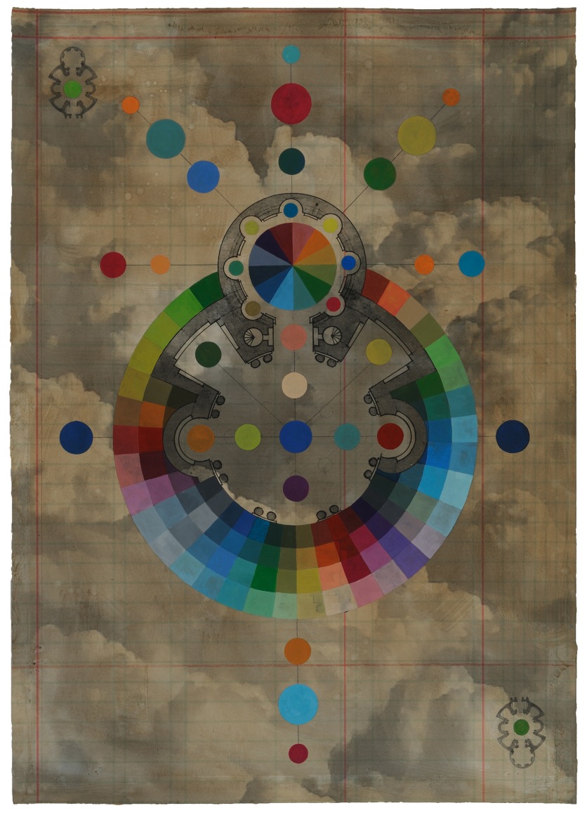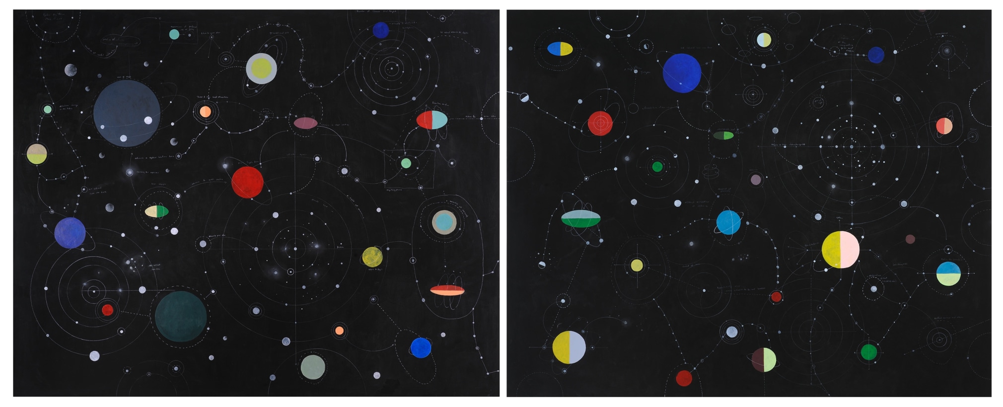 Julie Wolfe’s work is rooted in the practice of gathering images and data to explore the world around us, but more importantly, the inner worlds of the self. Wolfe guides the viewer on a journey of transformation through richly conceived systems of color, form, and language that often serve as markers of time and place. It is fitting that the artist introduces us to her newest body of work at a time when the James Webb Space Telescope has provided humanity with our deepest and clearest views of the universe to date. By reflecting 13.1 billion years of light back to Earth, scientists have illuminated the farthest reaches of the cosmos for us to collectively study. It is impossible to resist meditating on our relationship to those distant stars while faced with the magnitude of information in these telescope images.