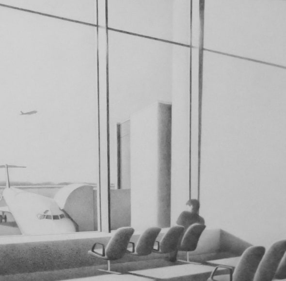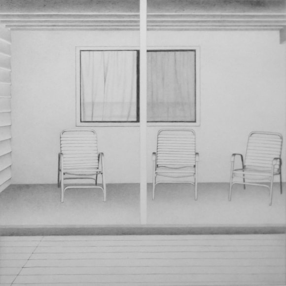 While often described as “nominally realist,” MacDonald’s output was stylistically varied. Early exhibitions showcased sophisticated compositions in the quietest color pencil, mostly unpeopled interiors. Over his 30+ year career, the artist also created oil paintings, large scale works on paper in many media, small edition lithographic and silkscreen prints, artist’s books, and installation and performance. In addition to interiors and landscape, MacDonald’s themes included mythology; locales such as Wheeling, Cuernavaca, and the DC suburbs; industrial and domestic architecture; and topics from literature and poetry.