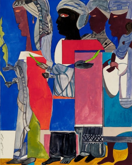 ROMARE HOWARD BEARDEN Processional Africaine, 1978 watercolor, gouache and pencil on paper 19 3/4 x 15 1/2 inches