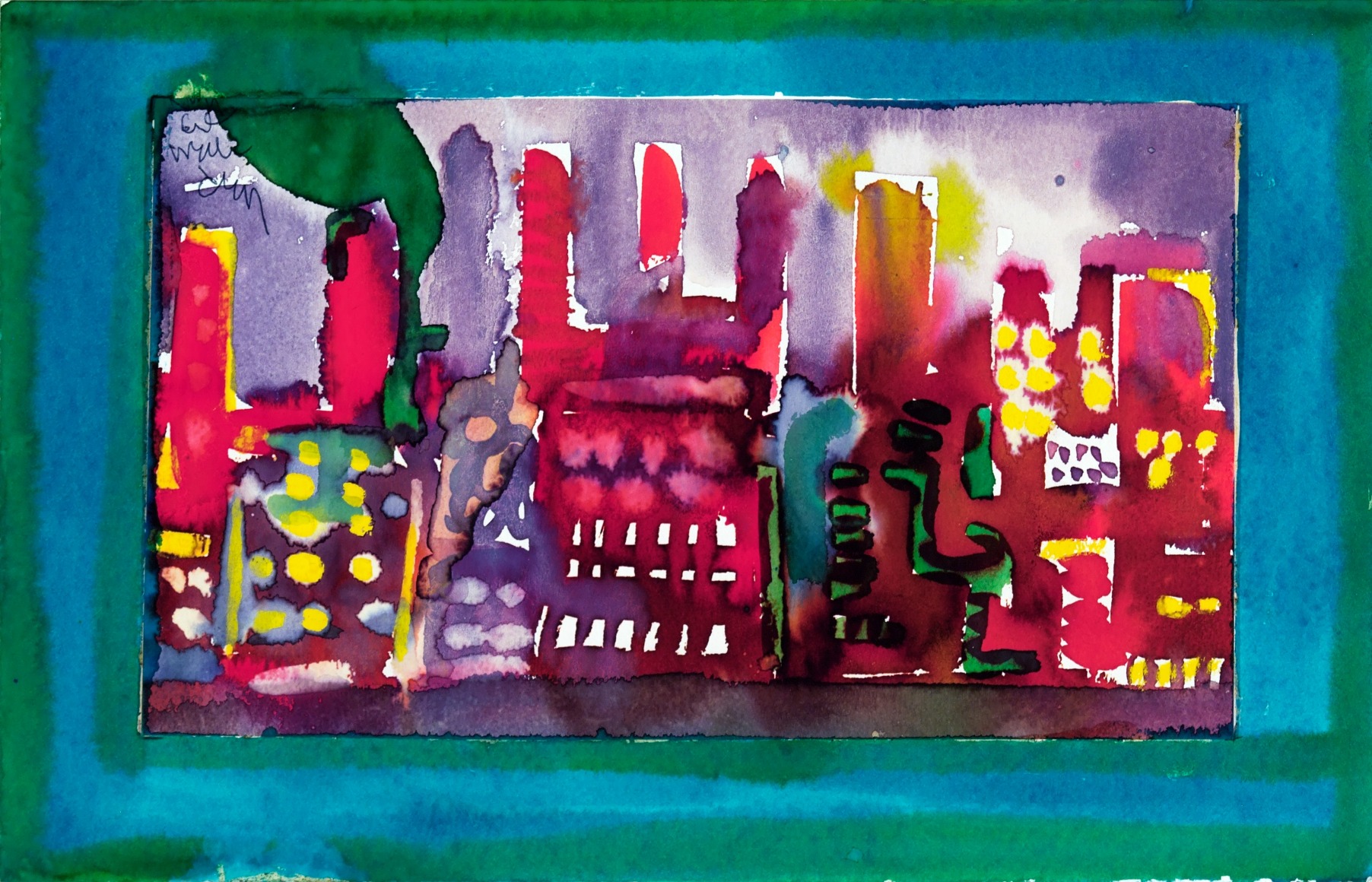 Cityscape - New York Scene c. 1985 watercolor on paper 9 3⁄4” x 15 3⁄8”