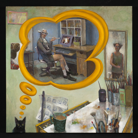 Through her array of personas, Newberry is able to achieve that which seems impossible in reality and expose herself openly and shamelessly. Her paintings are playful yet serious, assertive yet ambiguous, and darkly humorous. Employing painting techniques of both 17th century Dutch artists and the Philadelphia school of the 19th century, Newberry uses these tradition-bound methods to present the quirks and conceits of the modern era. In 1977, Newberry received her Bachelor of Fine Arts from the University of New Mexico, Albuquerque, NM, and in 1986 received her Master of Fine Arts in Painting from Indiana University, Bloomington.