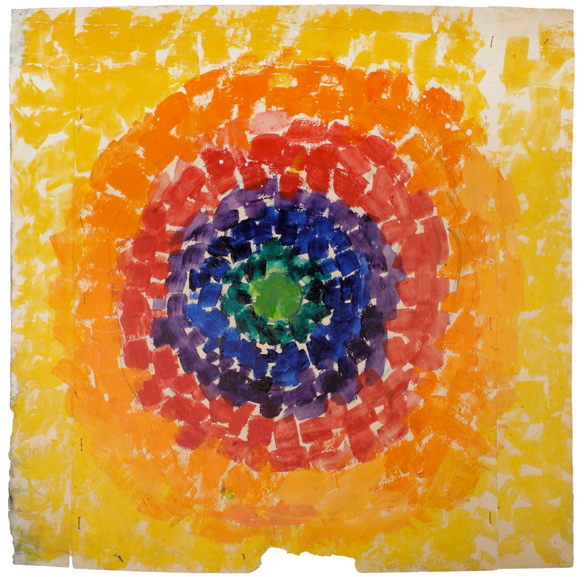 The preparatory works in Thirteen Studies for Paintings reveal the thoroughly strategic planning behind Thomas’s work. Often, multiple sheets of paper are taped or pinned together with notations in the margins and on the reverse, allowing us to feel Thomas’ process of thinking through a painting’s structure. Thirteen Studies for Paintings is a vibrant display of the artist at the height of her aesthetic and intellectual powers. And, yes, this work is beautiful. The subject of beauty is an undeniable part of the content of her work. Beauty is so often disdained by the upper echelon of art critics. Criticism is something this artist did not fear. She understood that beauty is the thing we should struggle to achieve. It could be said that Alma Thomas never actually retired from teaching, as her paintings continue to do just that.