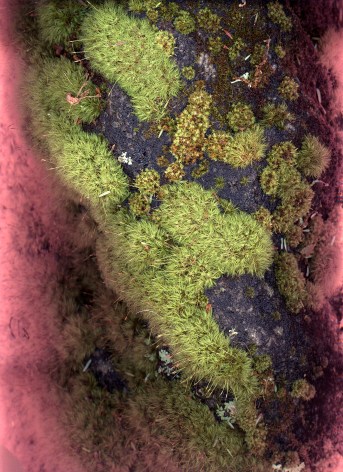 In previous bodies of work, Colby Caldwell bridged the gap between representation and abstraction, often bringing organic objects into his studio to shoot. Over the last two years, Caldwell has traversed the forests of the Blue Ridge Mountains armed with a collection of flatbed scanners as his camera, noticing nuances we are so quick to dismiss: fuzzy green moss blanketing root systems, and abandoned leaves tumbling into intricate mosaics. Moving over the forest floor and tracing lines of trees, Caldwell has recorded the natural world with the unnatural light emitted by the scanner. He continues to push what it means to be a photographer by recording his surroundings in curious ways. The discernable pieces of information in over & under are distorted, jumbled and inherently mystifying. While the scanner abstracts imagery, the final product presents us with the truth of our surroundings through the digital lens of the world today.
