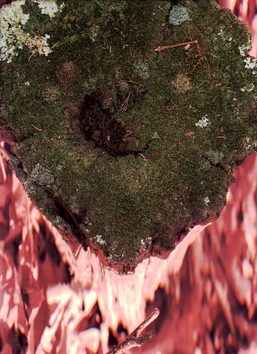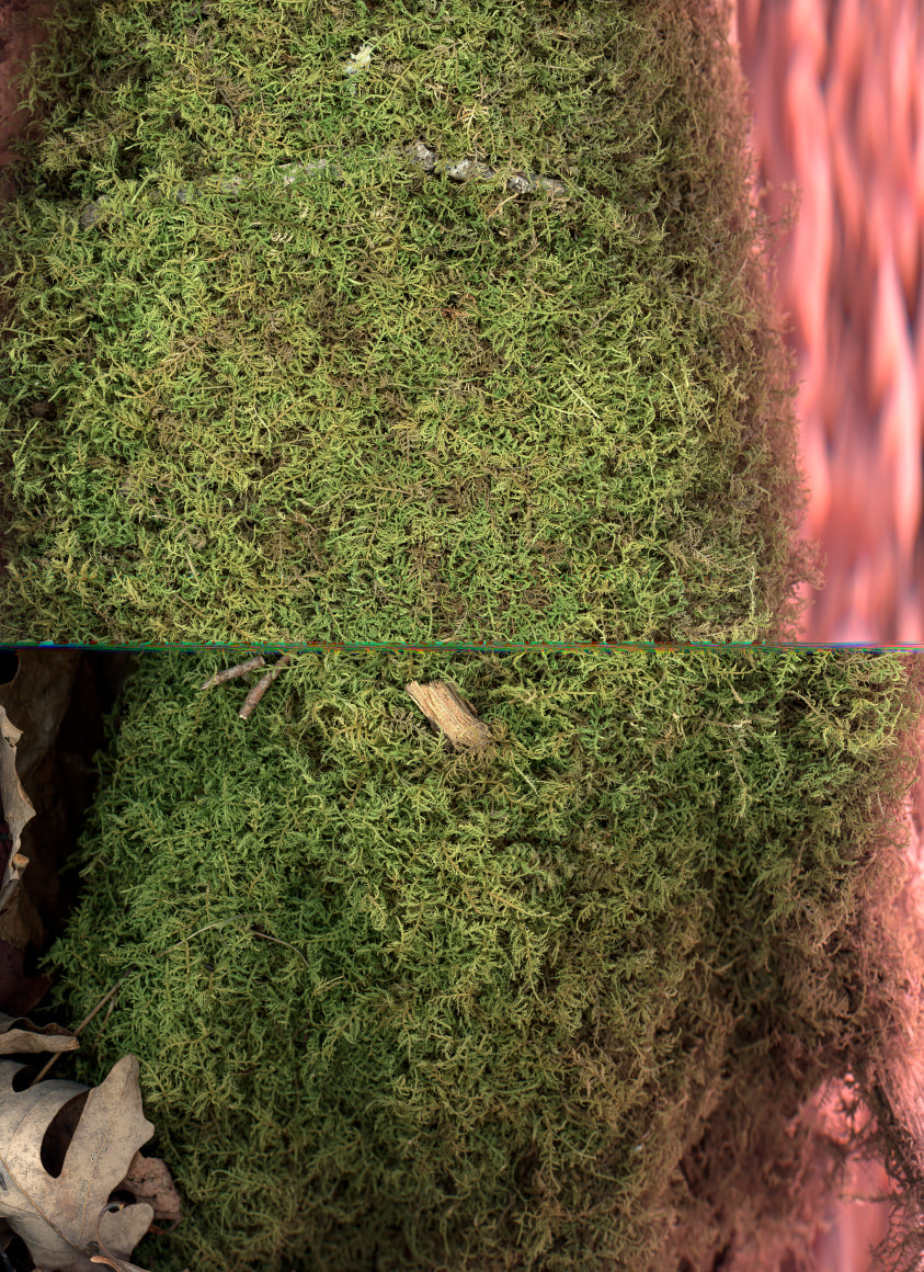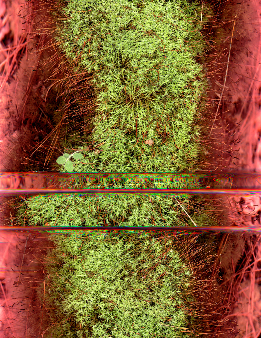 In previous bodies of work, Colby Caldwell bridged the gap between representation and abstraction, often bringing organic objects into his studio to shoot.  Over the last two years, Caldwell has traversed the forests of the Blue Ridge Mountains armed with a collection of flatbed scanners as his camera, noticing nuances we are so quick to dismiss: fuzzy green moss blanketing root systems, and abandoned leaves tumbling into intricate mosaics. Moving over the forest floor and tracing lines of trees, Caldwell has recorded the natural world with the unnatural light emitted by the scanner. He continues to push what it means to be a photographer by recording his surroundings in curious ways. The discernable pieces of information in over & under are distorted, jumbled and inherently mystifying. While the scanner abstracts imagery, the final product presents us with the truth of our surroundings through the digital lens of the world today.
