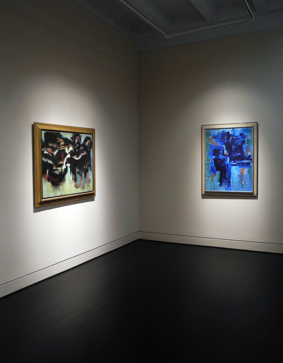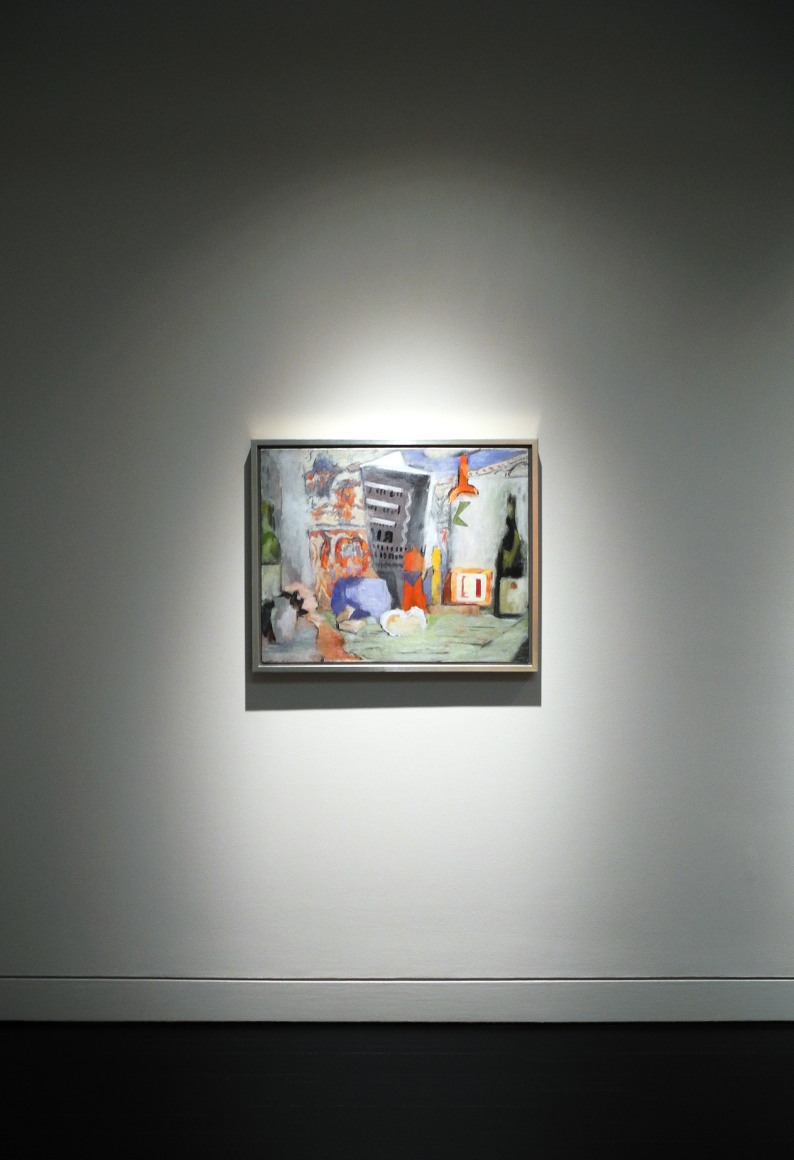 Throughout the 1950s, Thomas appropriated the tools of Abstract Expressionism and characteristically made them her own, applying pigment in blocks of color to create compositions incorporating figures and still life elements, and later, densely layered abstractions of night skies and earthly subjects. Thomas’s adept use of minimal brushstrokes to render forms is in use among all the paintings, whether figure or object, night sky, or spring flowers.