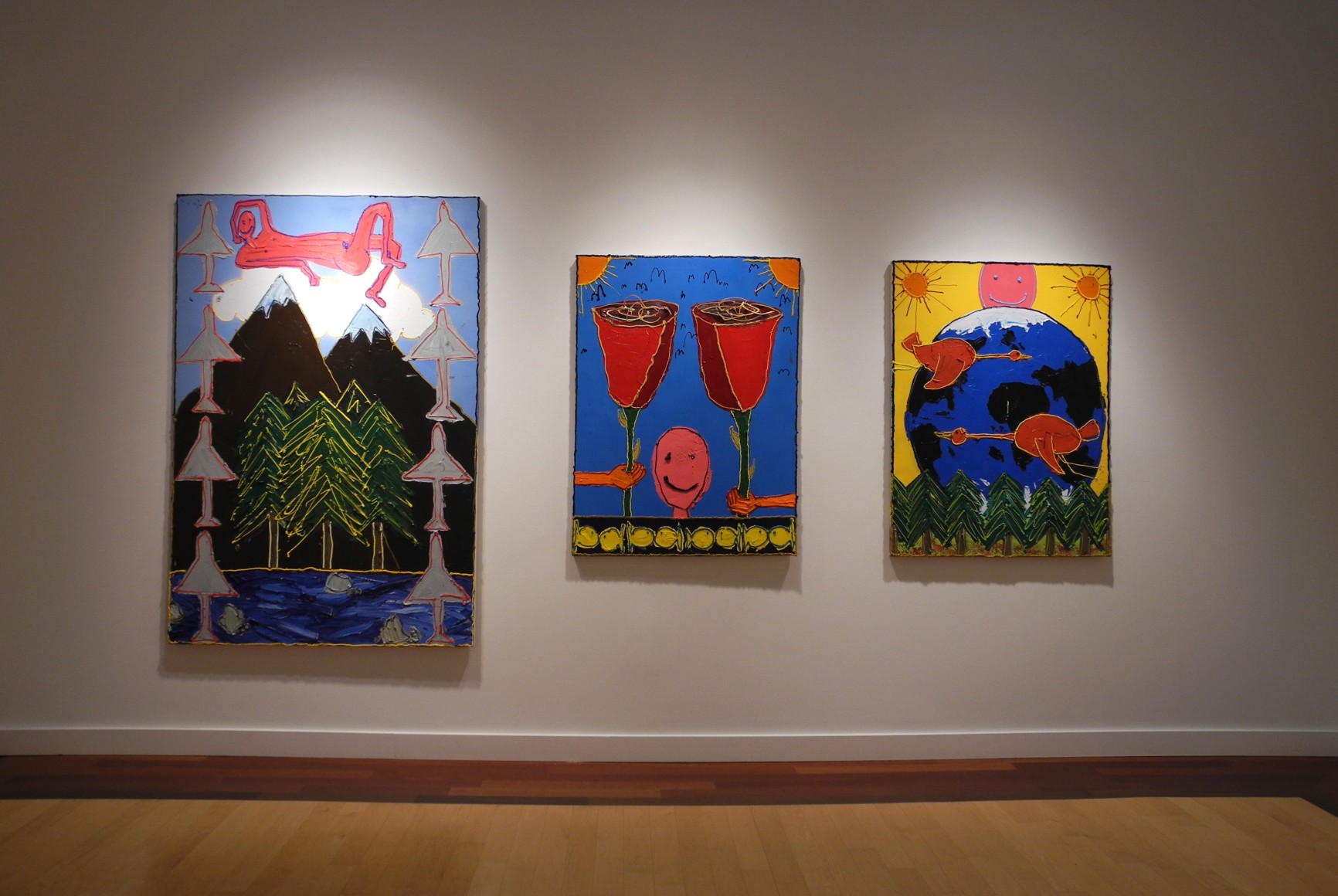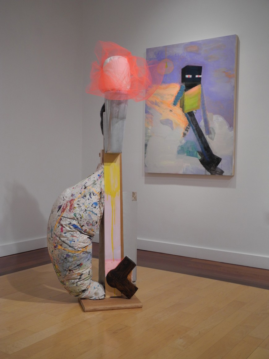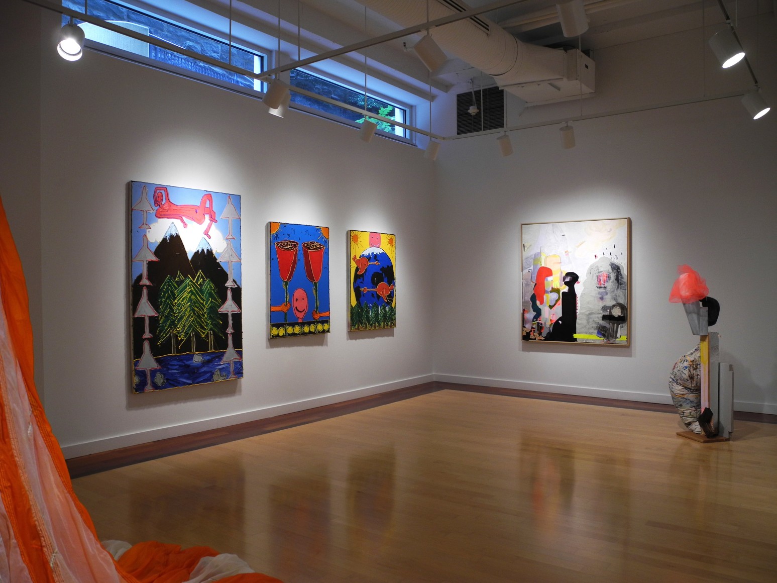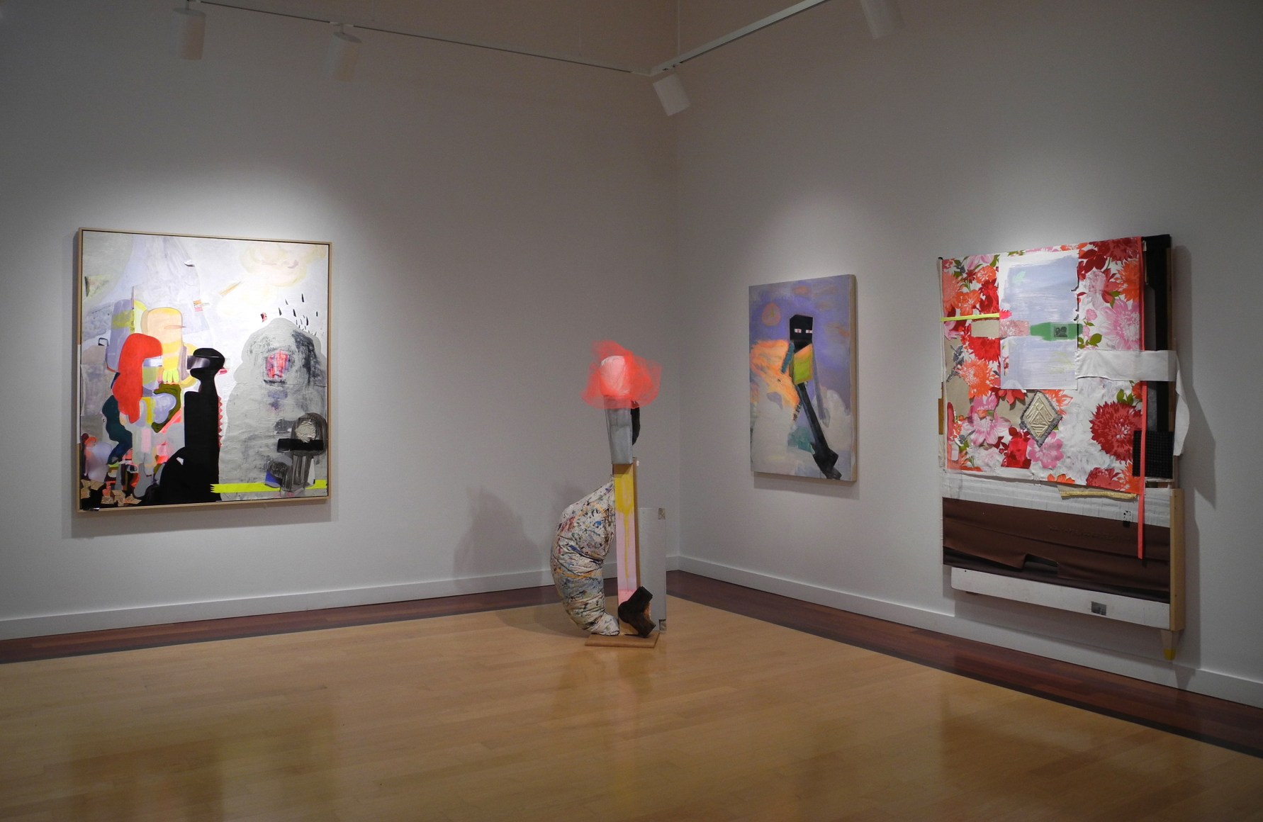 Roxana Alger Geffen calls upon the chaos of domestic life in her installations and wall constructions, using textiles and found objects. Her work is both a humorous celebration and an uncanny manifestation of every day life as a mother. Rives Wiley’s purely two-dimensional paintings evoke a disorienting sense of unease in architectural space. The figures in these works are trapped, but unaware that they exist only partially or may never be able to escape the confines of the canvas. Dave Eassa’s thickly painted pink figures engaging in various activities read as cartoonish, yet represent the deeper identities of the psyche. The figures are navigating not only the physical world, but also the emotional content of the self.