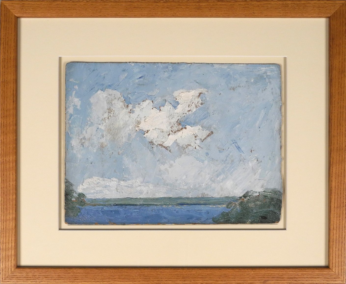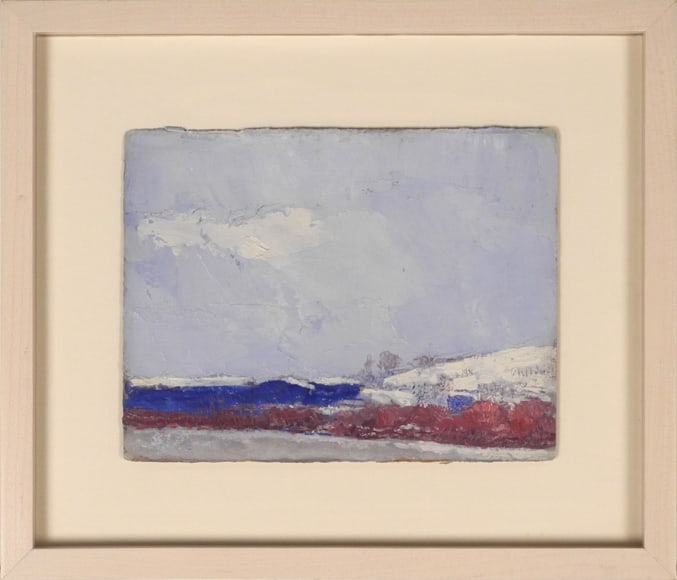 A devoted student of the natural sublime, portraiture, and visual criticism, Connecticut-born artist James Britton gave his life to art. He was a prolific writer and note taker, keeping detailed journals of his observations and notes on his life. These writings have compelled curators and historians to revisit his work, having fallen into relative obscurity after his death in 1936, a victim of ailing health and poverty. Despite his meager financial resources, he used whatever tools and materials were available to him, at times using scraps of cereal boxes as canvases for his paintings. He held a deep affection for the splendor of the New England countryside, from Connecticut to New York, and focused primarily on these subjects in the later years of his life. The 10 works on view in James Britton highlight the artist’s command of paint and light. None larger than a sheet of paper, each painting reveals itself to be an exquisite object, inviting closer inspection. Through this small survey of his later works, we are given a glimpse into the artist’s celebration of the American Northeast of the 1920s and 30s.