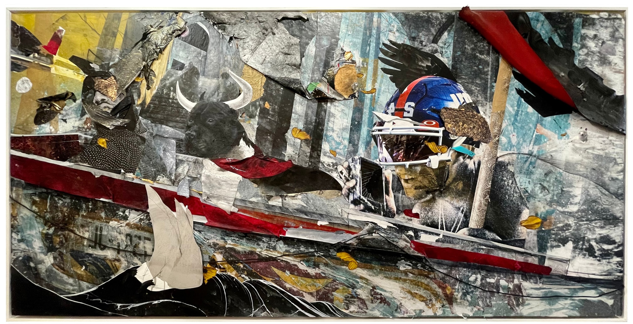 Imagine, children exclaim with glee, running over hot stone pavers as they take turns plunging deep below the water’s surface. “Cannonball!” one screams, jumping as high as the springs allow and catapulting into the air. The water erupts from its confines, soaking everything within 5 feet of the board. They churn the chlorine filled water, goggles suction cupped to their faces. The large-scale, exuberant pieces in Jump, Twist, Flow… encourage the viewer to move through the gallery in ways that evoke iconic summer diving board tricks: the cannonball, pencil dive, corkscrew, can opener, front flip, belly flop and the flying squirrel.