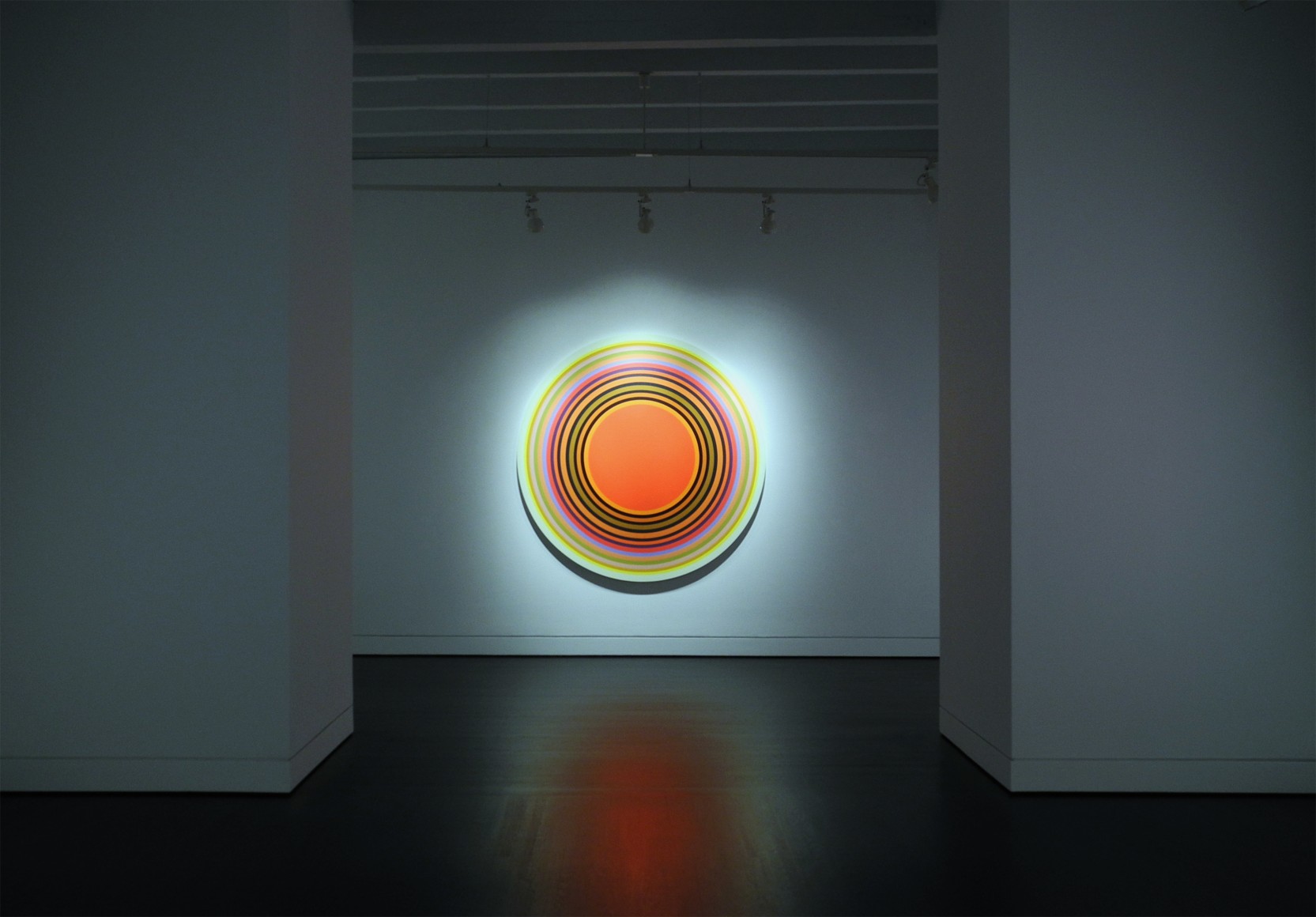 "Sure: We can compare her vibrating stripes to those of Davis. Yes: The circle recalls Noland. But neither of those artists were capable of capturing a deep space within their best known paintings."