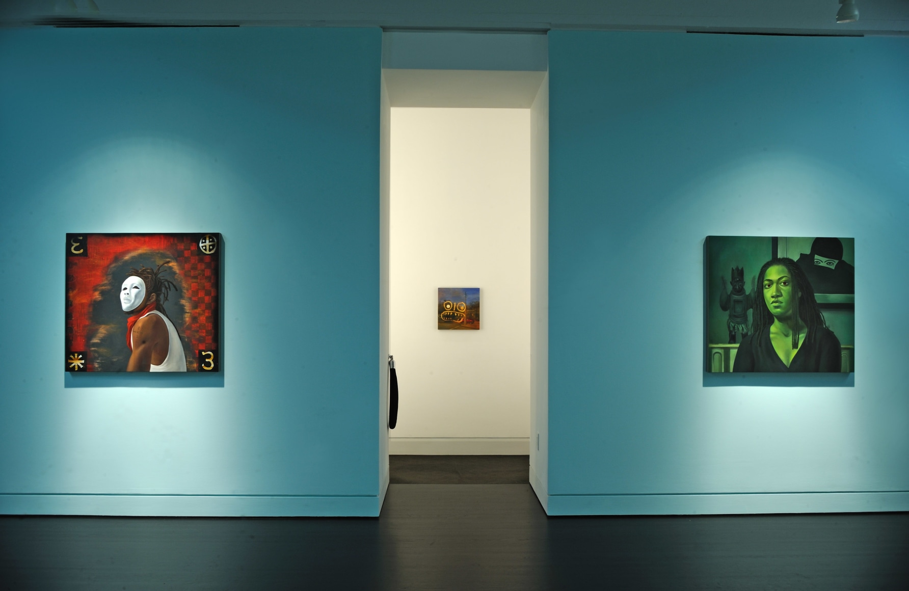 All art contains hope. At its most basic, an artwork evidences the wish to communicate. Even when reduced to only color and form, it inherently aims to engender something in the viewer. This something cannot be measured objectively, and its comprehension depends on a kind of magical thinking. In the exhibition When 6 is 9: Visions of a Parallel Universe, Renée Stout uses the conjurer’s imagery passed through her African American heritage to address our present state of stress and the subsequent need to dream. The subjects, one might say the voices, in her work speak to the madness of our time from their individual viewpoints. As we move through the exhibition, an elucidative empathy to these personal narratives fortifies our sense of whole beings, un-discountable, full of meaning. Progressing towards the end of the show we find ourselves in a parallel universe. Stout describes this as a place “where the spirits of mysterious colorful people… intersect in spaces teeming with possibilities.”