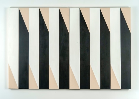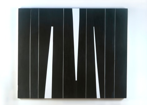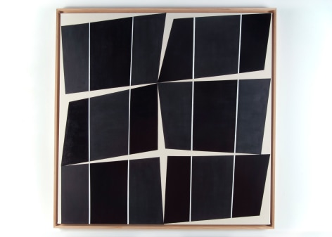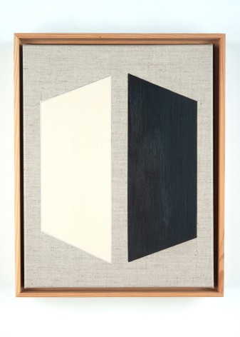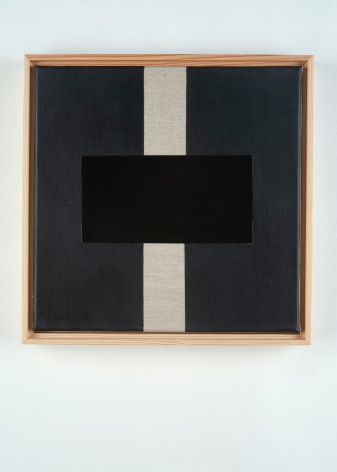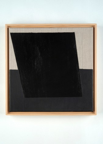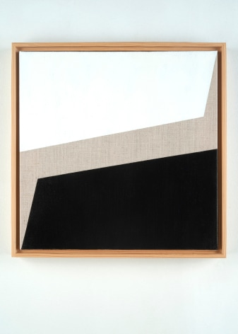 Throughout the last decade, Robert Novel completed over one hundred and fifty paintings in a limited palette ranging from white to soft gray to black, often incorporating raw canvas or linen as a compositional element of the work. The nuance and rawness of the visible linen or canvas contrasts the flat application of pigment and the strength of the geometric forms. Novel’s reflection on geometric abstraction and the unfolding experimentation of a single variation from one painting to the next brings a deep feeling of calm, and the repetition of visual motifs becomes a performance.
