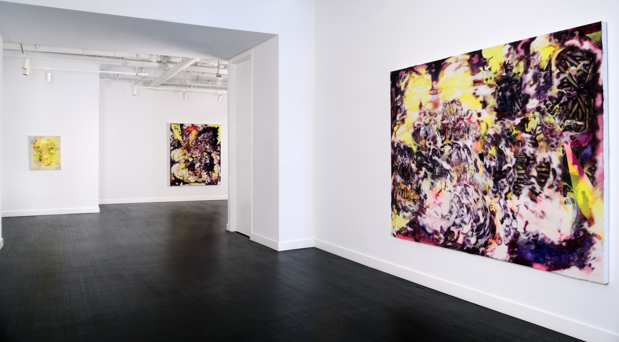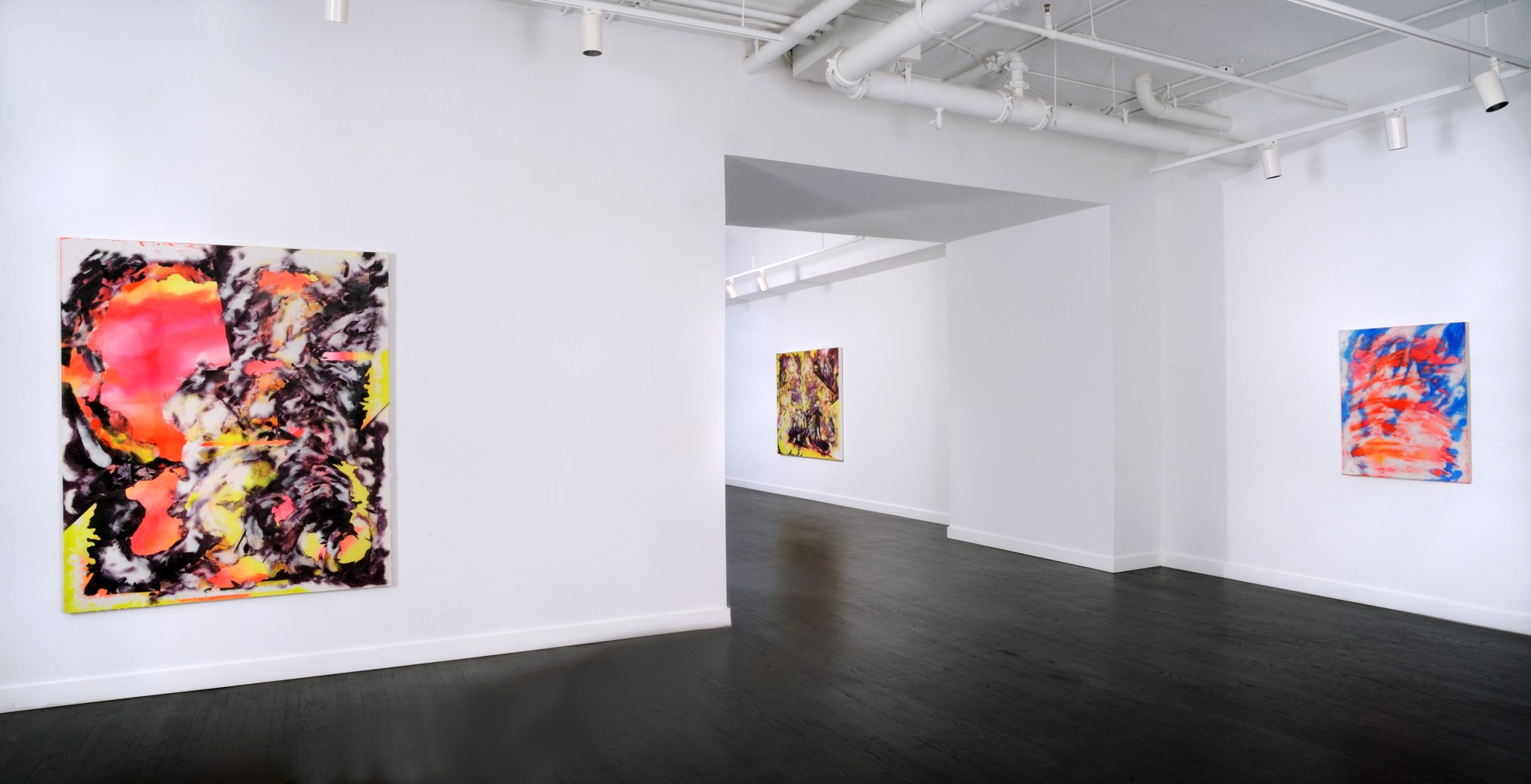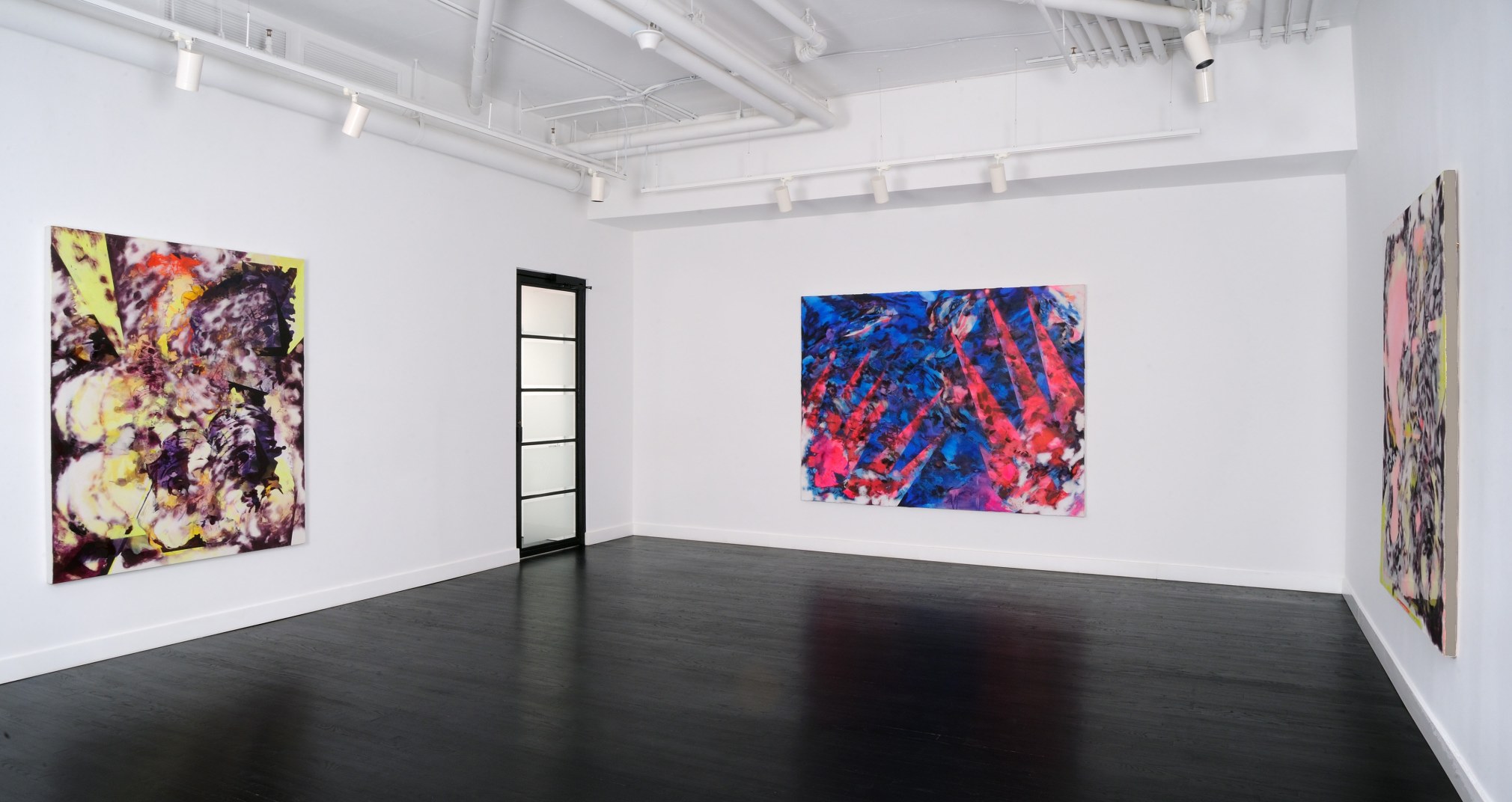 American Sunset is politically charged. Reflecting upon the cause and effect of abolitionist John Brown's 1859 raid on Harper's Ferry which accelerated the nation into civil war, Baker has created a cycle of paintings conjured from a process where representation generates abstraction. Large and colorful, both beautiful and terrifying, his paintings possess the currents of emotional energy felt within the present-day fight for social justice. Baker interleaves the events and geography of Harper’s Ferry with textural applications of acrylic material, varying between matte and glossy, dark and light. The bits and pieces of representational content still visible in his work are caught in a storm of spinning, broken alternately disappearing and reappearing parts. Although the show references a historical event, it could not be more of the present. Baker's ability to depict this maelstrom from an observer's distance places the viewer in the calm at the eye of a storm. A position where the question arises; "how will you respond when the next wall of the storm overtakes us?” Like exhibitions of other great political artworks, American Sunset is both lamentation and inspiration.