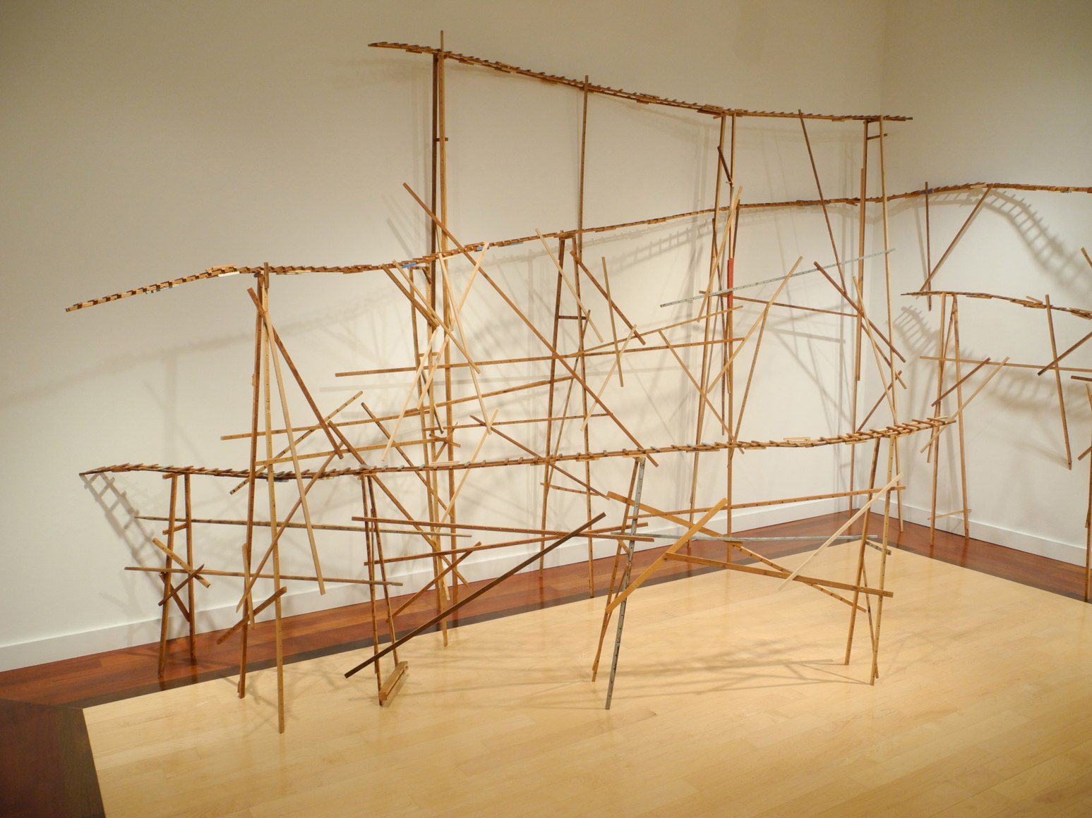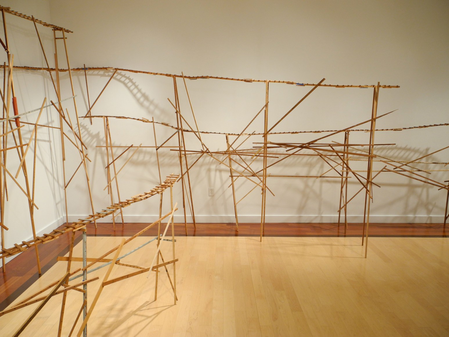Space is the place, a cosmological double entendre, on the one hand conjures up thoughts of vastness while simultaneously grounding us to particular places and spaces. I am interested in the latter, and through my work attempt to define existing spaces and to create entirely new ones. Through installation, I attempt to engage the spaces of our built environment. Piercing walls, connecting floor with ceiling, and crossing voids, my installations depend on, and become a part of, the space they occupy.