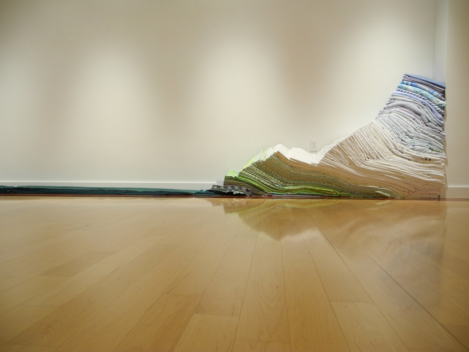 Space is the place for action: thinking and making. Making an installation is coming to know a space. I make work to understand a space with my body, to convert space into place. I find myself inside the work, surrounded by folds and marks, color and pattern. My artworks are deeply rooted in their sites because they reflect my direct experience of the concrete world around me.