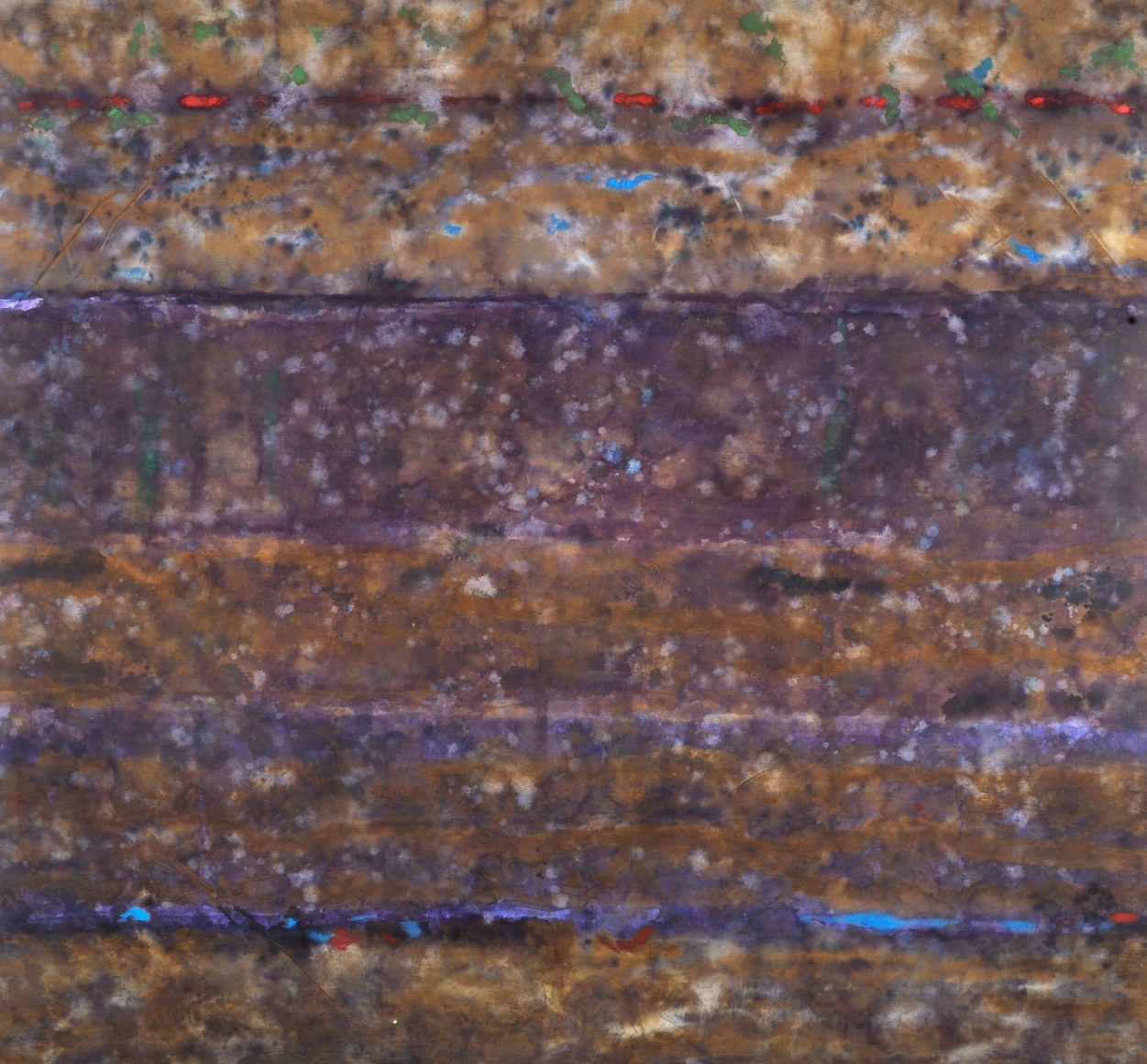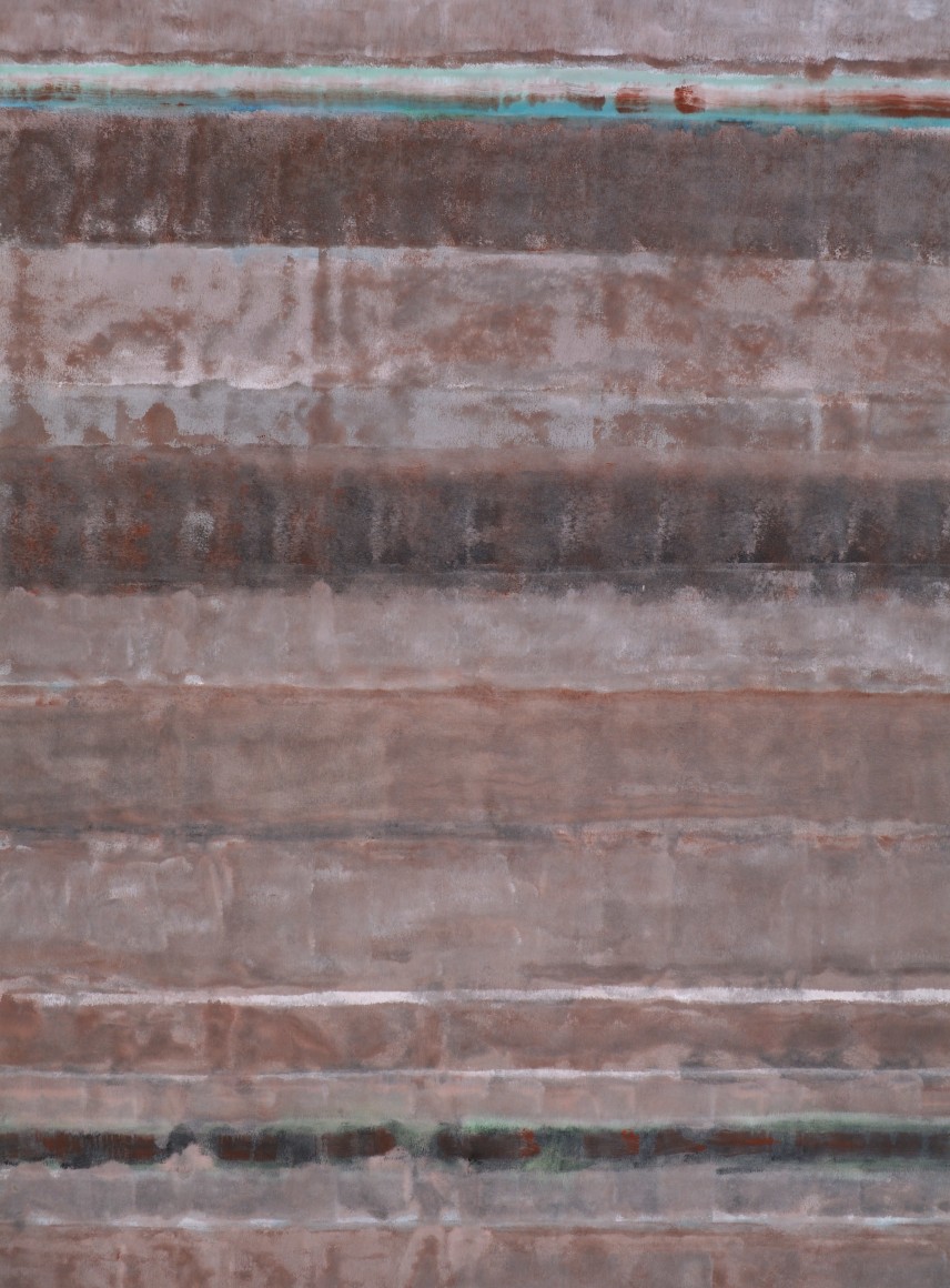 In 1972, Willem de Looper traveled to the Western United States to see the sublime natural formations of the Grand Canyon. The rocky façade provided de Looper with a visualized storyline of millions of years of natural history. The stunning qualities of the banded strata left a lasting impression on the artist and ultimately became a subconscious obsession. Painting with rollers enabled de Looper to depict abstracted landscapes inspired by his travels. The delicate yet deliberate choice of color and layered paint presents the viewer with a vibrant representation of the craggy façade de Looper encountered at the Grand Canyon in 1972. WILLEM DE LOOPER presents paintings and works on paper from this period.