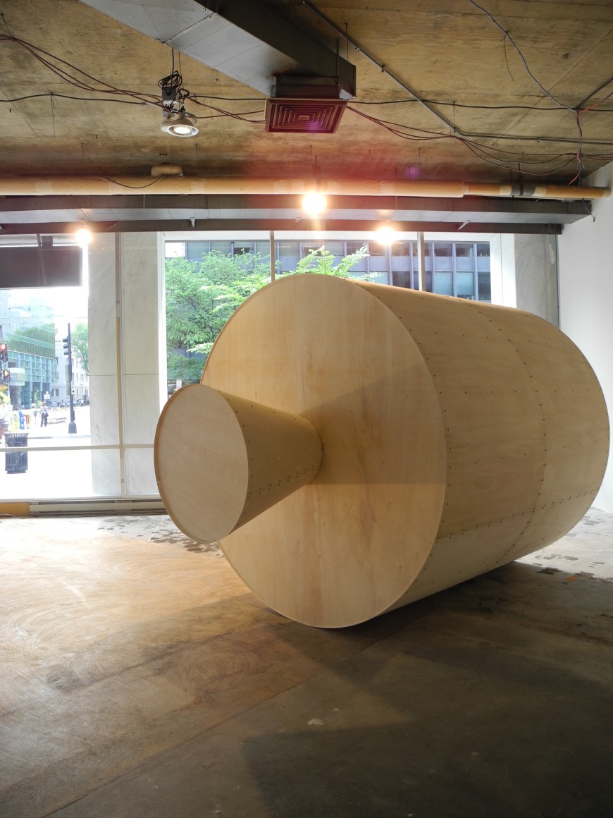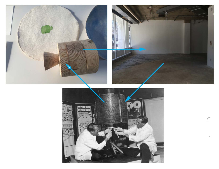"The local collaborative-art group, whose core members are Tom Ashcraft and Peter Winant, began constructing an oversize wooden model of Intelsat I in April. The sculpture will be on display in a vacant storefront at 17th and L streets NW until the end of the month, when it will literally disappear. Because the doors are too small to accommodate the mock satellite, the artists must disassemble it to remove it."